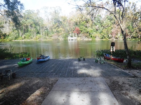 From the launch, the main spring is blocked to paddlers. The recreation area includes parking, restrooms, concession, swimming at the spring, camping, and picnicking.