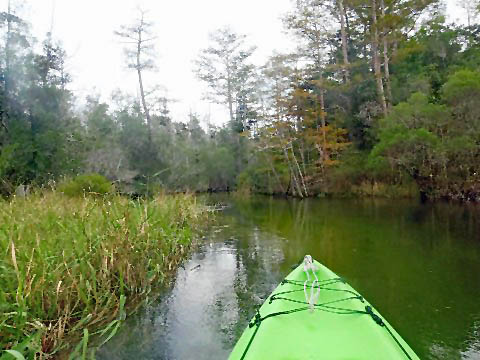 Downstream, the current carries you as the creek winds around gentle bends. The creek bottom and water wildlife are clearly visible. Surprisingly few downed logs to navigate. The creek widens as it approaches the Yellow River, where there may be motorboat traffic. We paddled a short distance downstream, we'll check out the rest of the way and Yellow River on another trip.