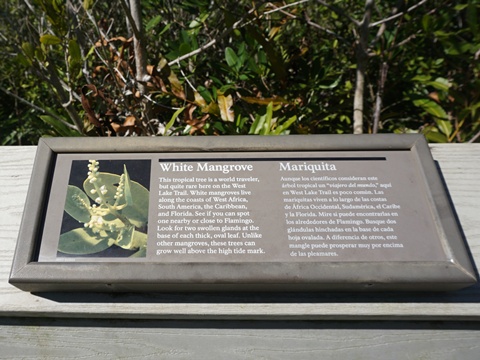 The trailhead is located off the main park road about 7 miles north of the Flamingo Visitor Center. Parking, restrooms and a picnic pavilion are available. A half-mile (round-trip) boardwalk trail through mangrove meanders from the road to a boardwalk at the lake.