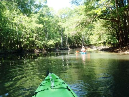 We paddled from Fanning Branch Landing downstream toward Hightower Spring, and return. The concrete boat ramp at Fanning Branch is easy on and off.