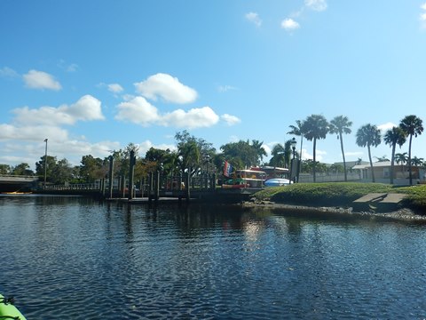 From the launch, we also paddled just a short distance downstream. Here it is wider and we saw more recent development. There's another launch at River Park off (new) US 41 about 2 miles down, but we didn't visit. The river gets wider and busier with motorboats as it approaches and then empties into Estero Bay.