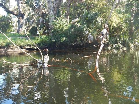 Paddling upstream from the hand launch at Depot Park, the River passes some unique older homes, then newer. Progressing upstream, the river gradually narrows with shade increasing. There are several small slices of nature, with palms, cypress, and oaks draped in Spanish moss, providing glimpses of semi-tropical freshwater beauty that is rarely seen elsewhere in Southwest Florida today. At the I-75 bridge, the water becomes too shallow for most paddlers to continue. (A launch at Cullums Bonita Trail provides limited access to the eastern "river," a canal draining Preserves.) The many native birds and turtles are now used to kayaks, so plenty of photo opps. Alligators and manatee are often reported, but we didn't see any this day. While the beaches on the Gulf are the big draws, this is a paddling gem, the type of sheltered, clear "small water" paddling we enjoy most. Homes aside, this part of the river retains an Old Florida vibe. And returning with the current is always a big plus!