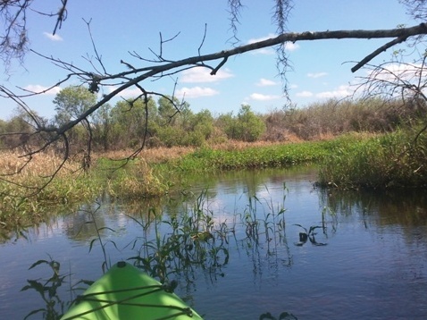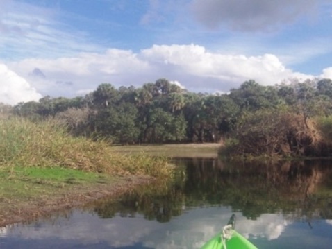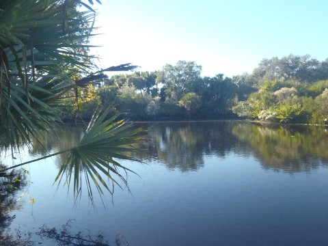 We paddled the Myakka River at Myakka River State Park on several trips: from Lake Myakka (upper) downstream to Lower Lake Myakka, and upstream from the north end of the upper Lake, until stopped by vegetation. The river alternates from wide flats to narrow channels with very little shade. Flowing mostly through open prairie, the horizons are endless making "where river and prairie meet the sky" an apt description. At low water, it will be necessary to portage in some areas.