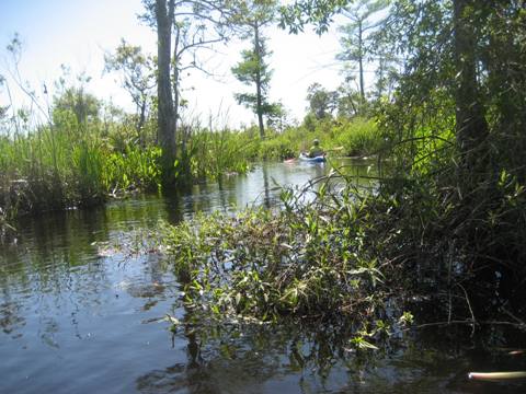 From Tide Creek, we paddled across the river about 2/10 mile to Cow Creek. Right after entering the creek a landing spot was a welcome sight, the only place to stop and stretch on the whole trip. We paddled a short way on Cow Creek before returning to the river to continue our trip.