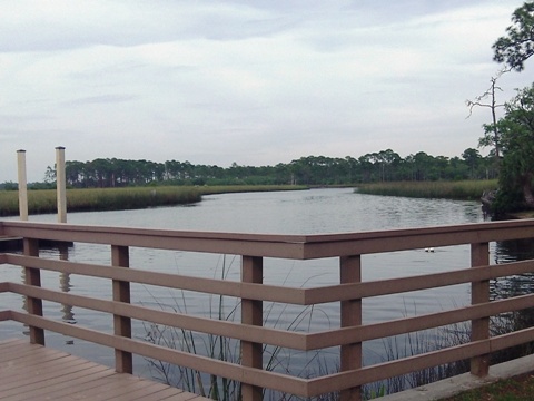 Ochlockonee River State Park is at the convergence of the Ochlockonee River and Dead River. At the point where the rivers converge are a picnic and swimming area, playground. There also are hiking trails, boat ramp, campsites with restrooms and showers. Bike rentals are available and biking allowed on the park drive, the scenic drive, and multi-use trails. Wildlife include turtles, alligators and many birds including the endangered red-cockaded woodpecker. Fishing is popular including bass, sea trout, redfish and speckled perch. The white squirrels are unique.